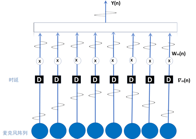 假設(shè)麥克風(fēng)的數(shù)量為M,第i個(gè)麥克風(fēng)接收到的信號(hào)為,對(duì)進(jìn)行時(shí)延對(duì)齊后,累加可得